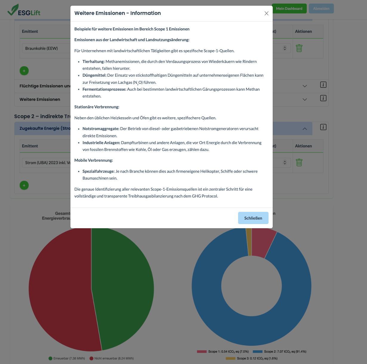 Eingabe von Umweltkennzahlen inklusive CO2-Fußabdruck